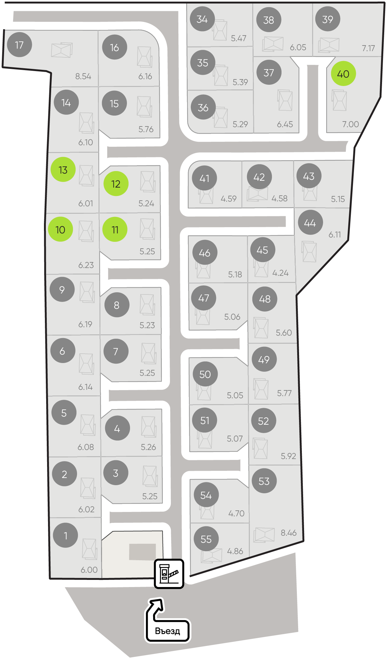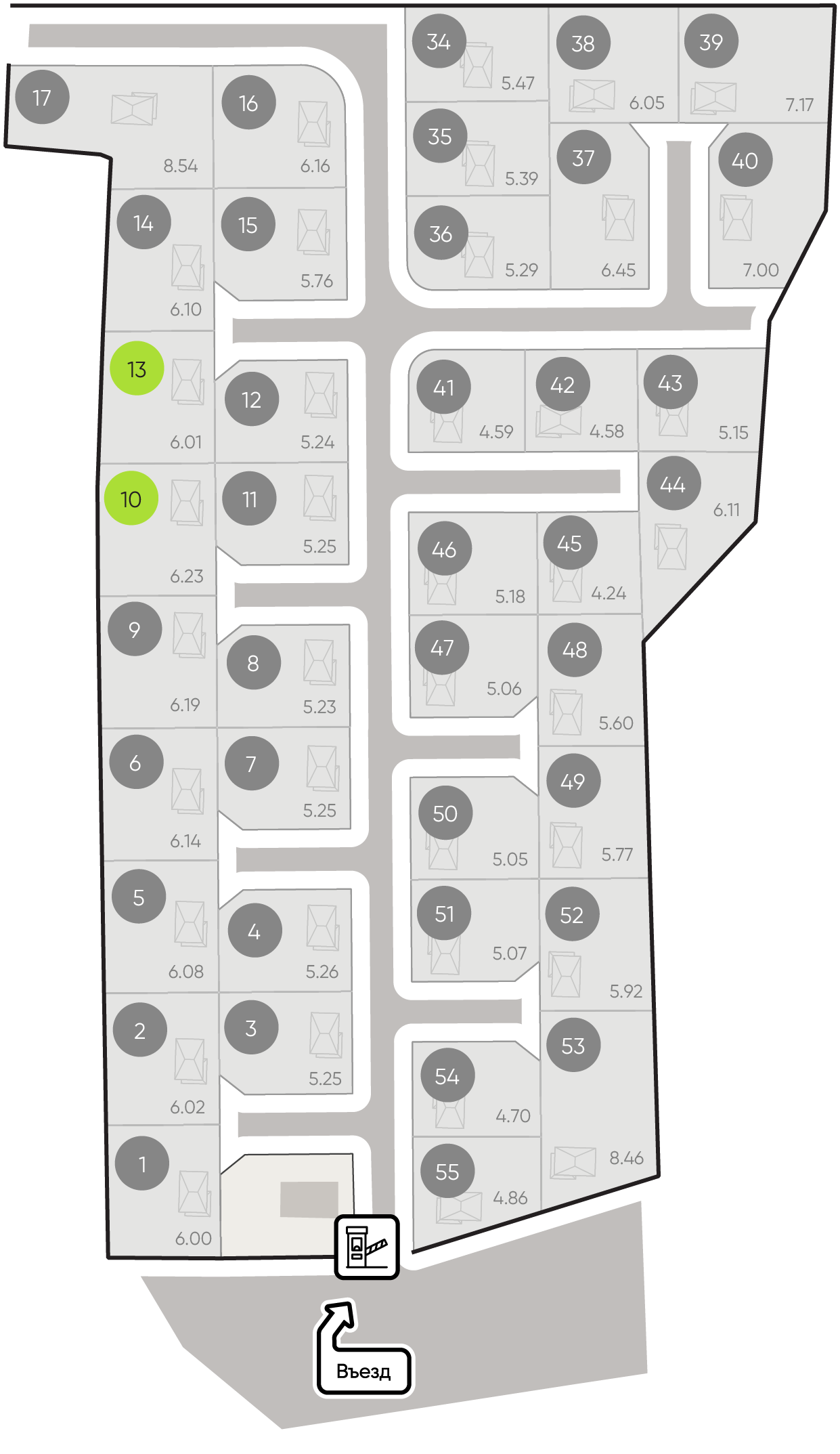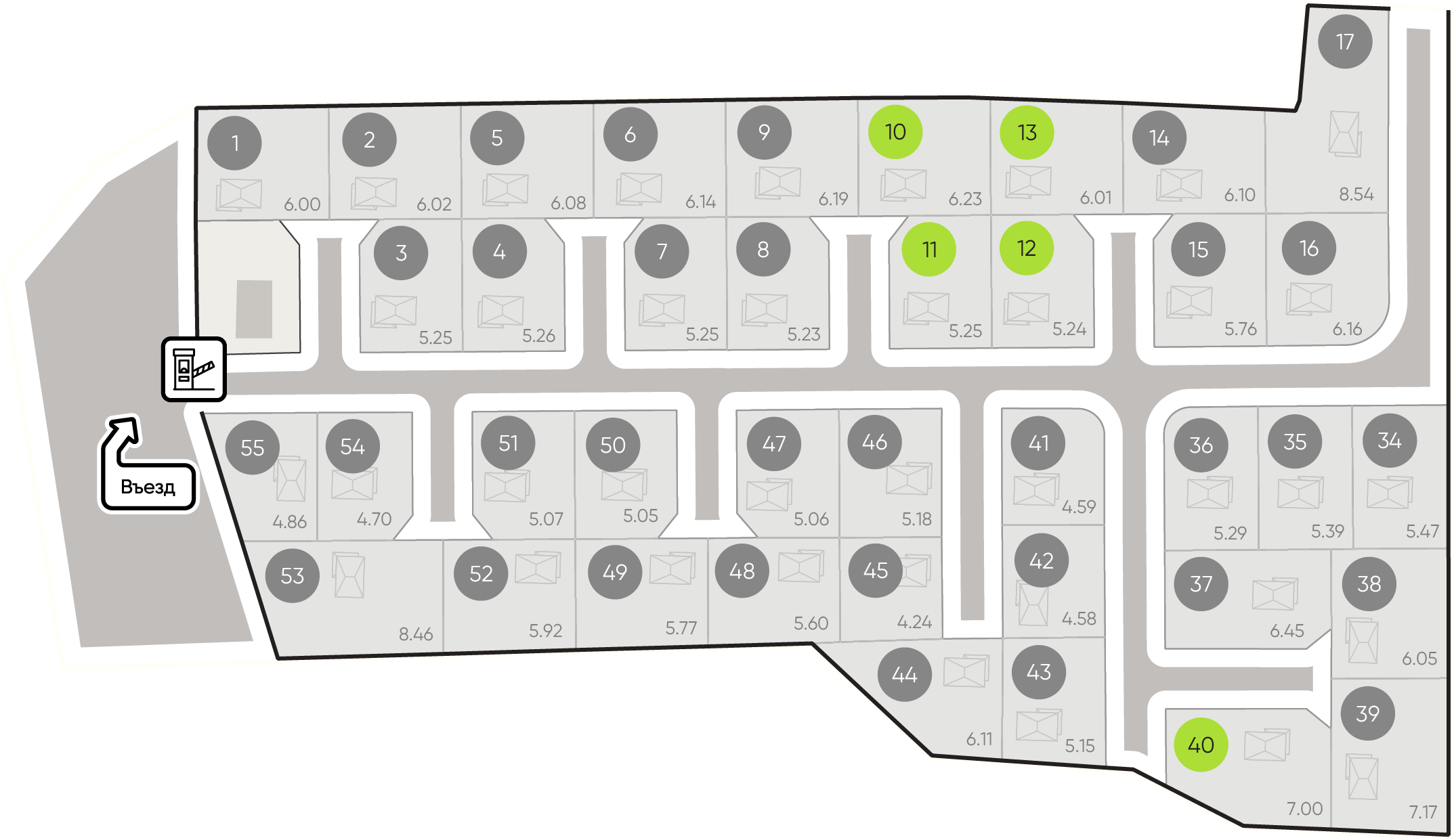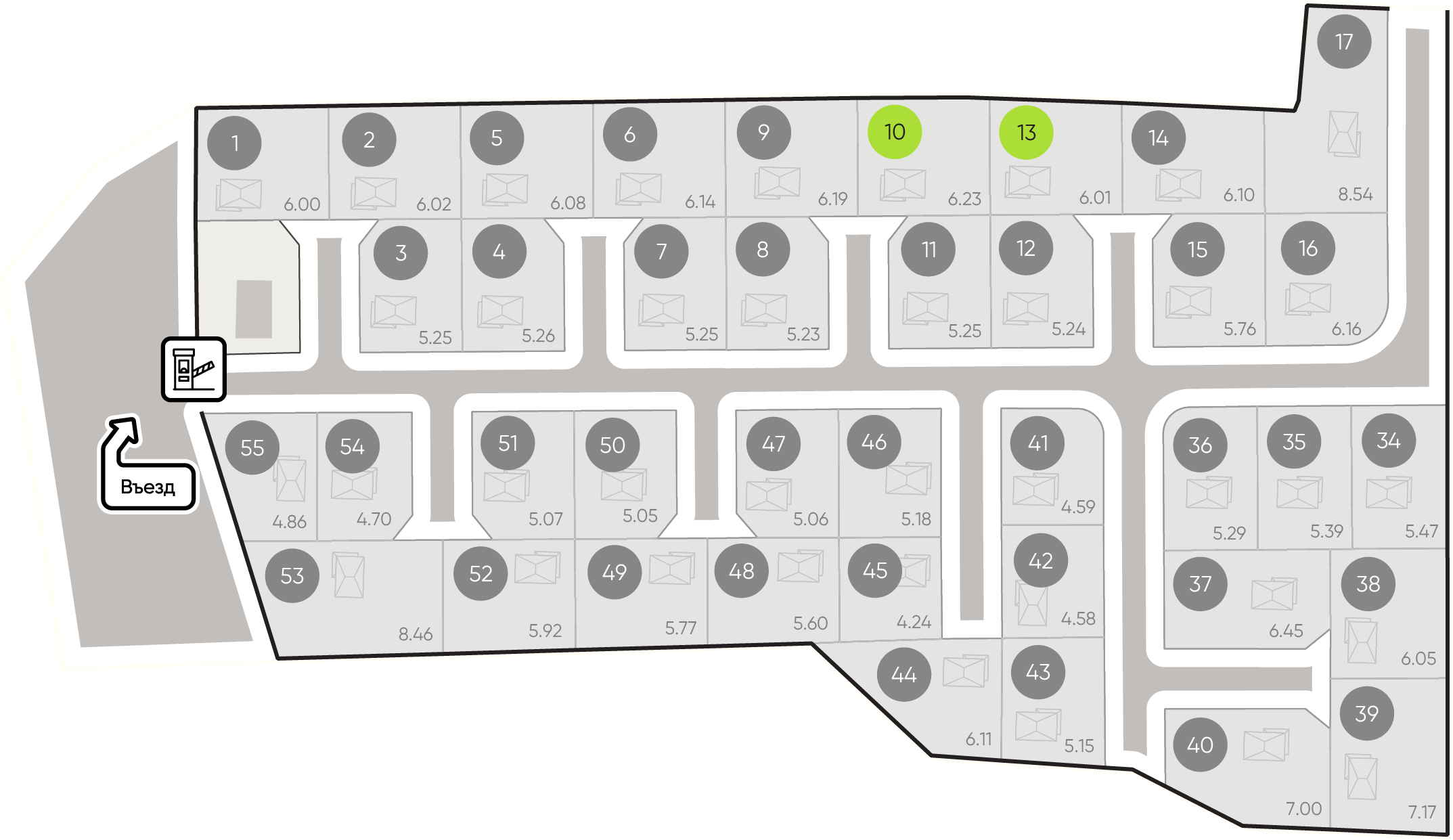 По границе каждого участка Уже подключено ✔